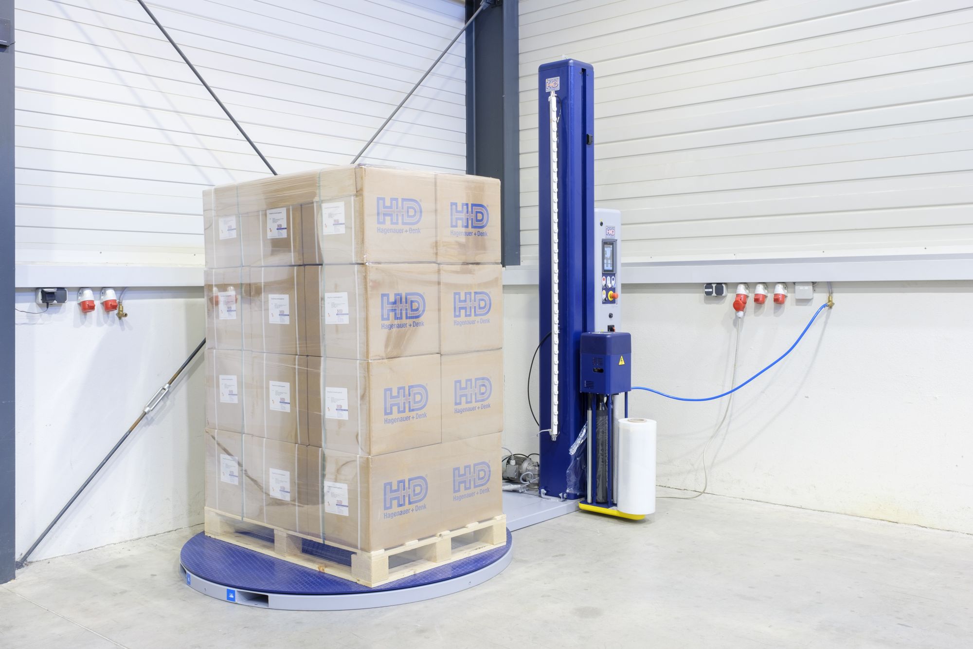 "Mit Palettenwicklern wird PE-Stretchfolie unter Dehnung und ohne Breitenverlust automatisch auf die Palette aufgetragen. Das Ergebnis ist ein doppelter Schutz Ihrer Ware, einerseits vor Umwelteinflüssen und Diebstahl, andererseits vor den Unwägbarkeiten des rauhen Speditions-Alltags.