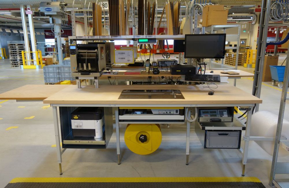 - Ergonomisch: Eine Arbeitshöhe von 750 mm und viel Fußfreiheit erlauben das Arbeiten in aufrechter Körperhaltung.