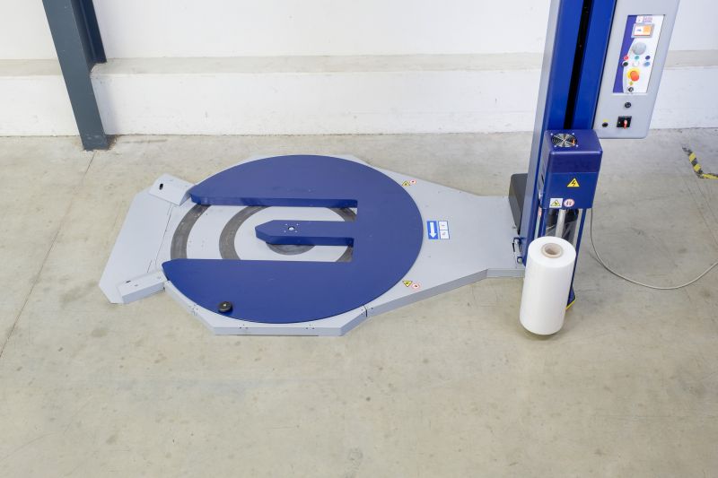 - Pneumatischer oder elektrischer Andruckteller zur Stabilisierung von leichtem Palettiergut während des Wickelvorgangs