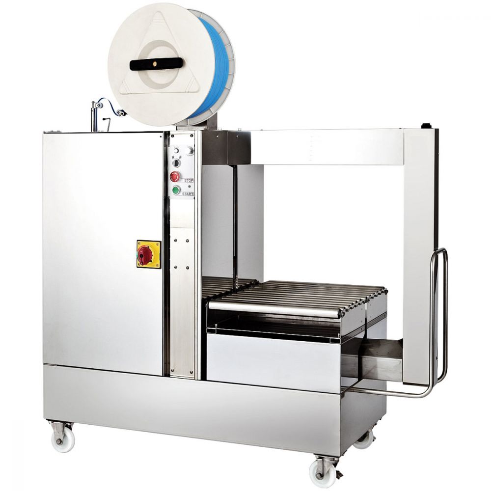 - Halbautomatische Umreifungsmaschinen für Kartons/Behälter